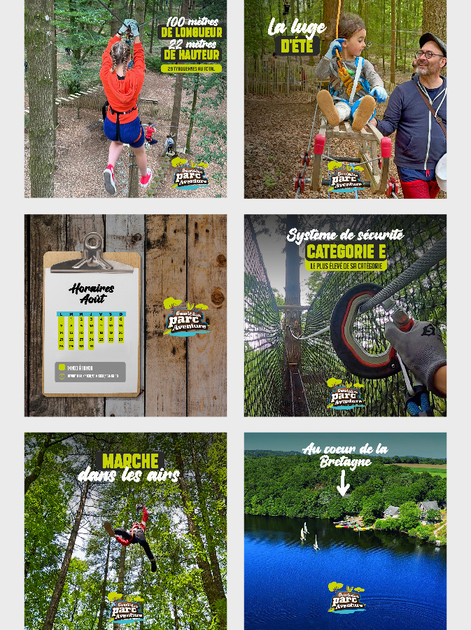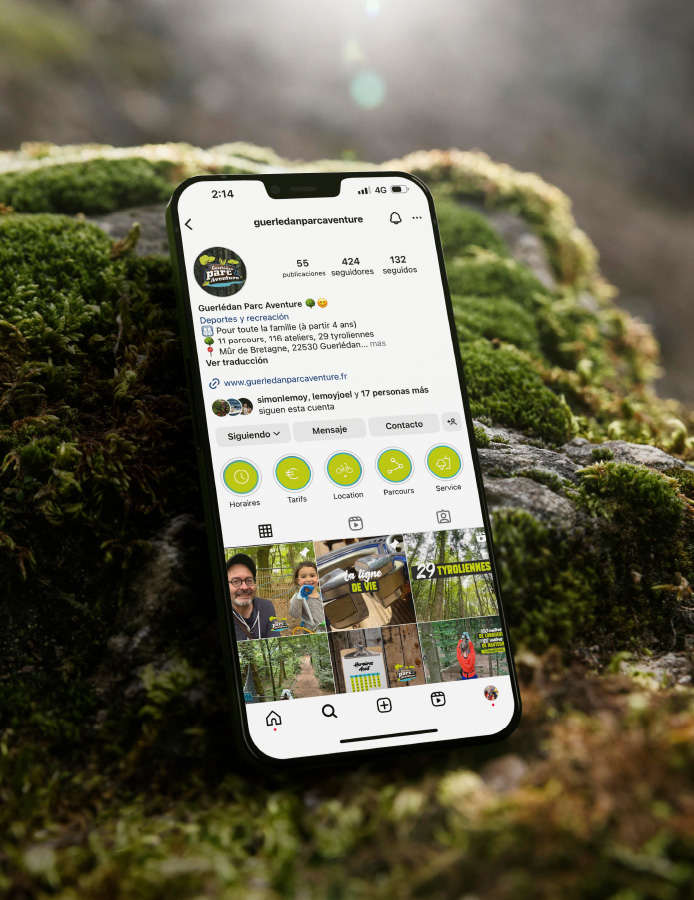 Profesionalizamos la imagen de uno de los parques de aventura más grande en la zona de Bretagne, Francia. Trabajamos en estrecha colaboración con el equipo de Guerledán Parc Aventure para desarrollar una estrategia integral que incluyó la creación de una nueva identidad de marca, la gestión de sus redes sociales y la implementación de campañas de publicidad en redes sociales para incrementar la cantidad de visitantes al parque.